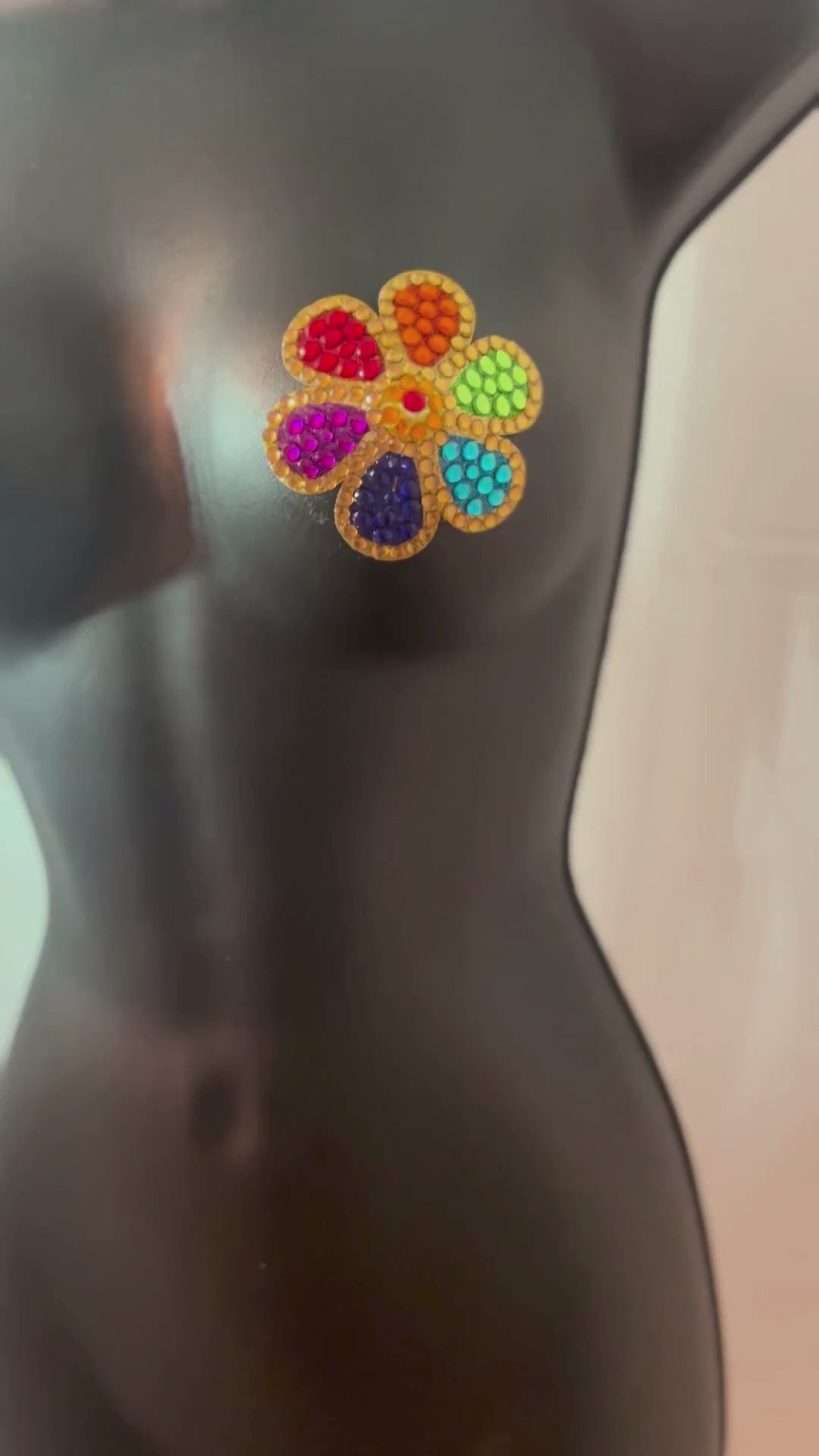 Don't be fooled by their dazzling appearance and bold presence, these FLOWER POWER pasties are surprisingly lightweight and comfortable. Perfect for every festive occasion these pasties will elevate any public or private outfit or accessory collection. Whether you're dominating the dance floor, or just embracing your inner goddess, these pasties are the ultimate fashion statement.