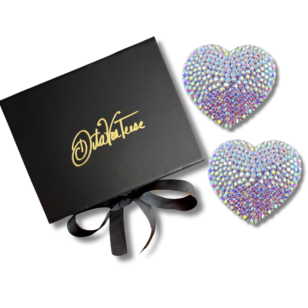 “Glamorously erotic, playfully titillating, these bejeweled pasties are made to delight, whether you’re dazzling a crowd, your partner, or simply indulging in your own reflection. Enjoy them as a decadent hint of glitz underneath a sheer blouse… or master the tassel twirl. However you dare to wear them, you’re bound to ignite a spark of self expression!”