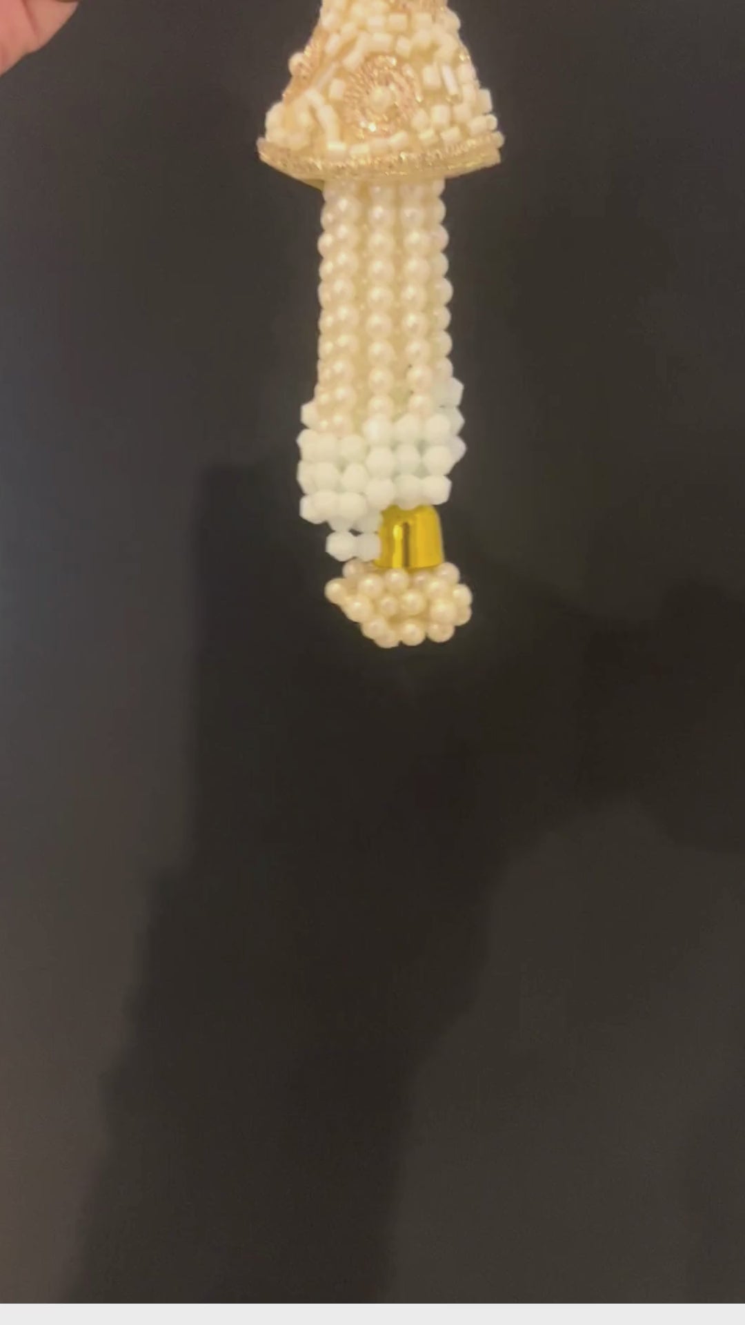 ● Matériaux : Paillettes blanches, perles et pierres précieuses dorées sur une base en mousse légère avec adhésif hypoallergénique sans latex (réutilisable).