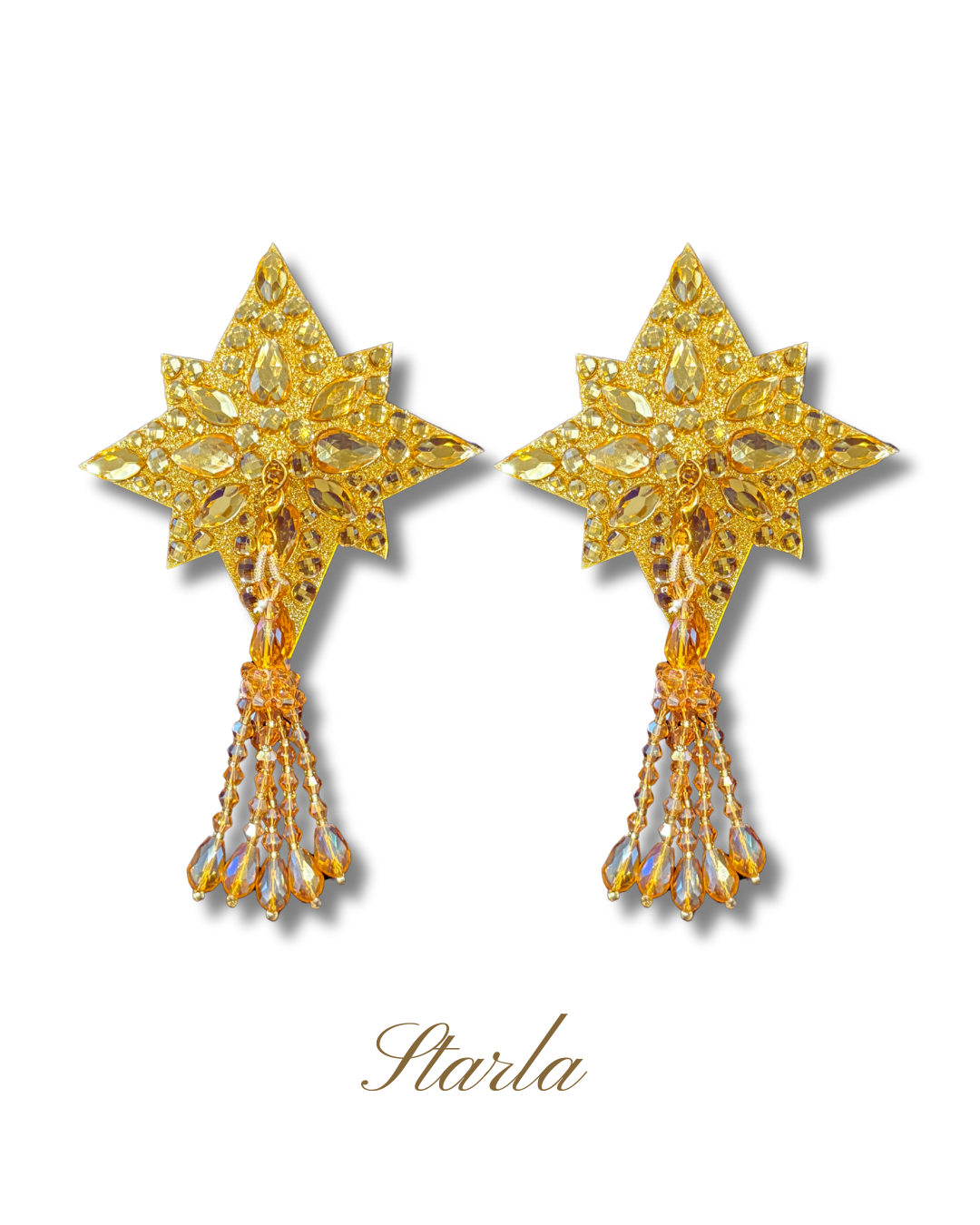 DITA VON TEESE Starla Shimmering Gold Star Crystal Pasties with Removable Hand-Beaded Tassels (2pcs)