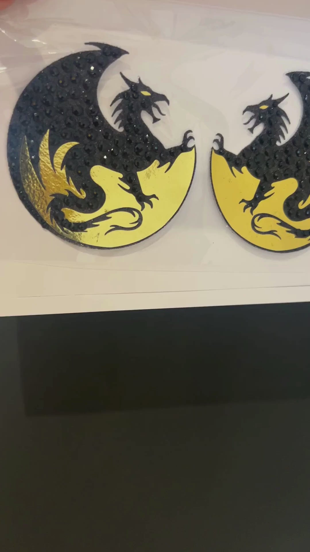 Unleash your inner fire with our Gold & Black Dragon Nipple Pasties, designed for those who dare to be fierce and fearless. These striking pasties, featuring a mesmerizing dragon motif in shimmering gold and bold black, are as enchanting as they are empowering. Whether you're setting the stage or turning up the heat behind closed doors, these dragon-inspired beauties will have you feeling untamed and unstoppable. Perfect for adding a touch of fantasy and fierce charm to any look—let your wild side soar with every glance!