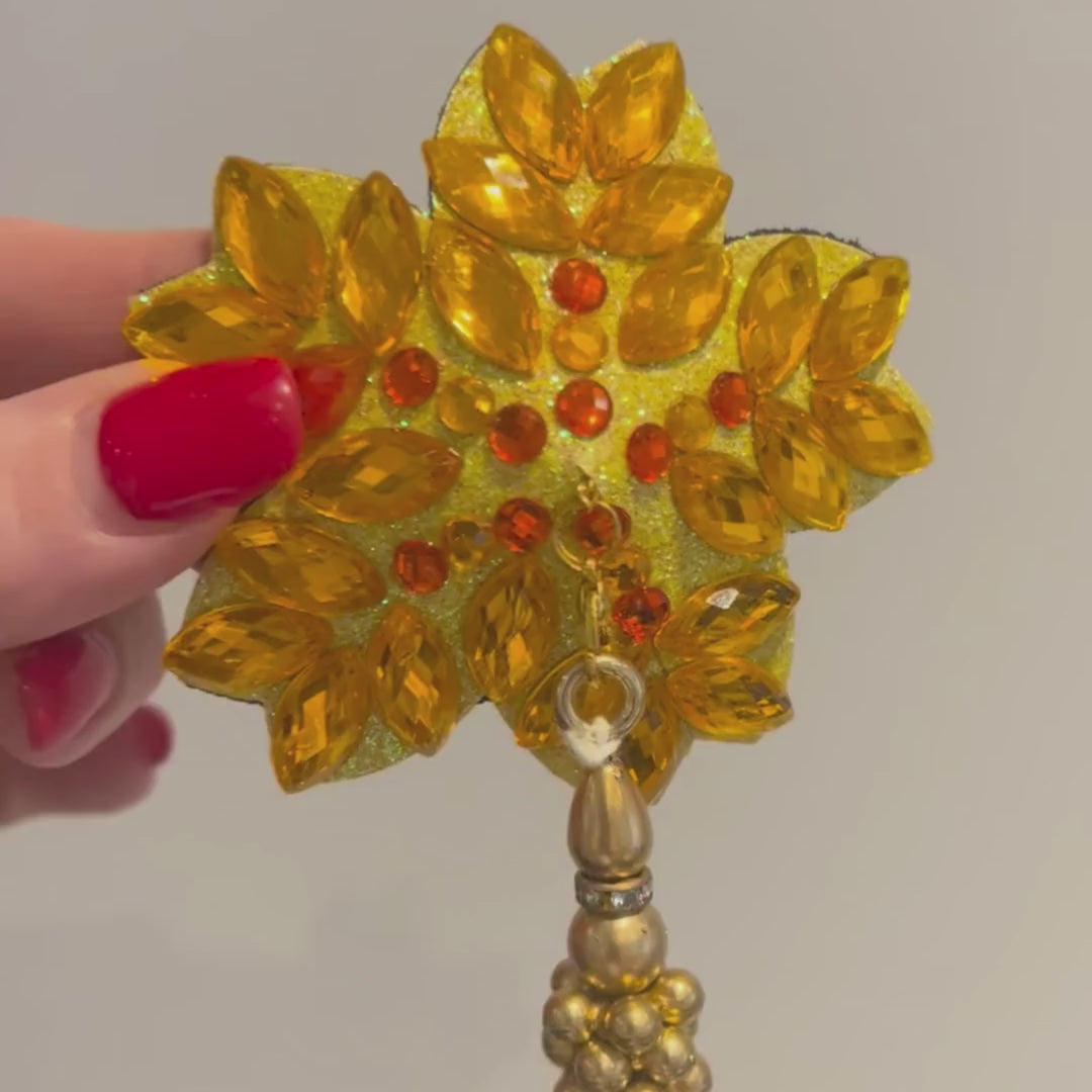 GOLDIE SWAN Yellow Flower Nipple Pasty, Nipple Cover (2pcs) avec des glands perlés jaunes et dorés pour lingerie Carnival Burlesque Rave