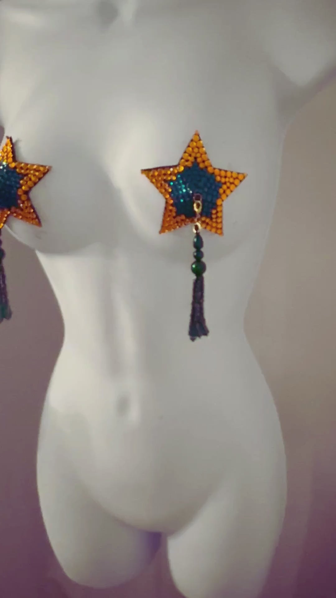 HONEY Green and Orange Star Pasties with Removable Tassels (2pcs)