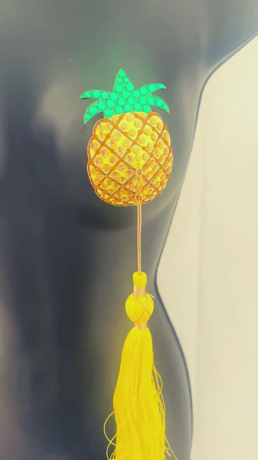 BAHAMA MAMA Yellow Pineapple Nipple Pasty, Nipple Cover (2pcs) with Removable Extra Long Tassels for Lingerie Carnival Burlesque Rave
