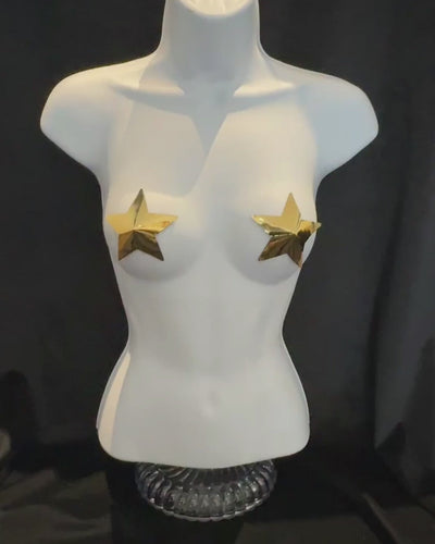 CELESTE Metallic Effect Stars Nipple Pasties are made to catch the light, and keep it. Designed in a bold star silhouette with a high-shine metallic finish, these statement pasties bring playful glamour, futuristic edge, and show-stopping sparkle to any look.