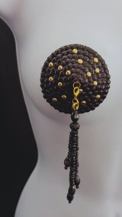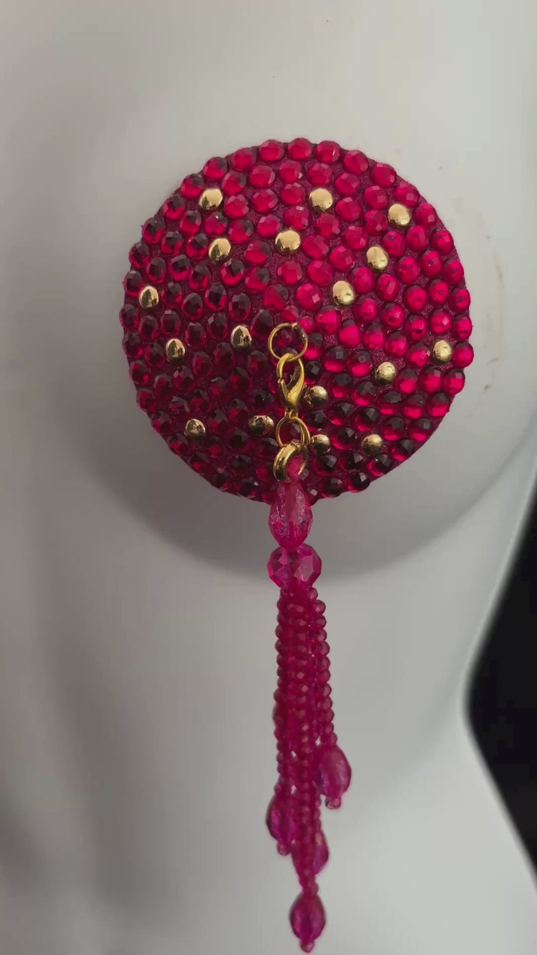Flirty, sparkly, and impossible to ignore—COQUETTE is the ultimate public or private showgirl tease. Crystal tassels, gold accents, and pure attitude.Whether in pink-and-gold sweetness or sultry black-and-gold allure, COQUETTE is all about the art of the tease...seductive, confident, and dripping in old-Hollywood showgirl charm. Designed to dazzle on stage or in private, these pasties prove that being a little naughty never looked so chic.