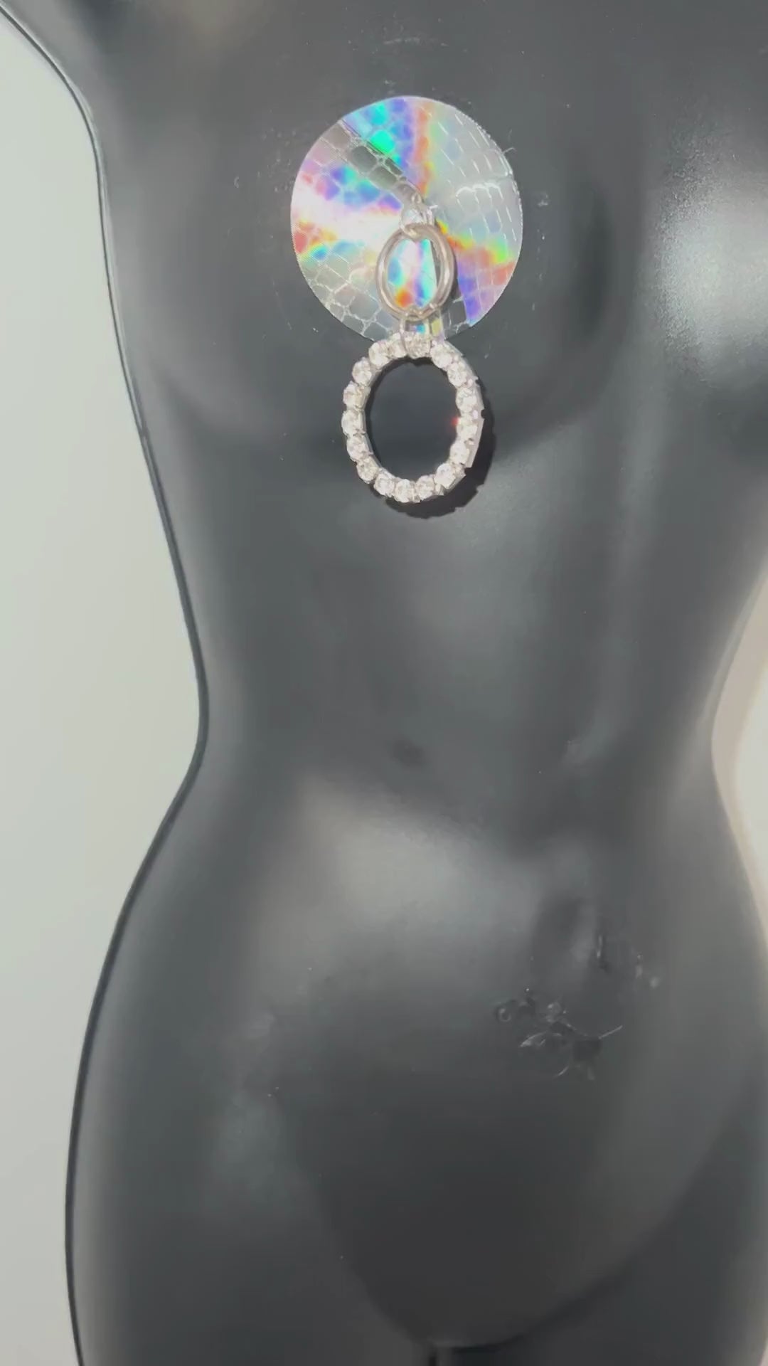 DIRTY MARTINI Silver & Rhinestone Nipple Pasty, Cover (2pcs) with Circle Rhinestone Hoop Tassel for Burlesque Lingerie Raves and Festivals
