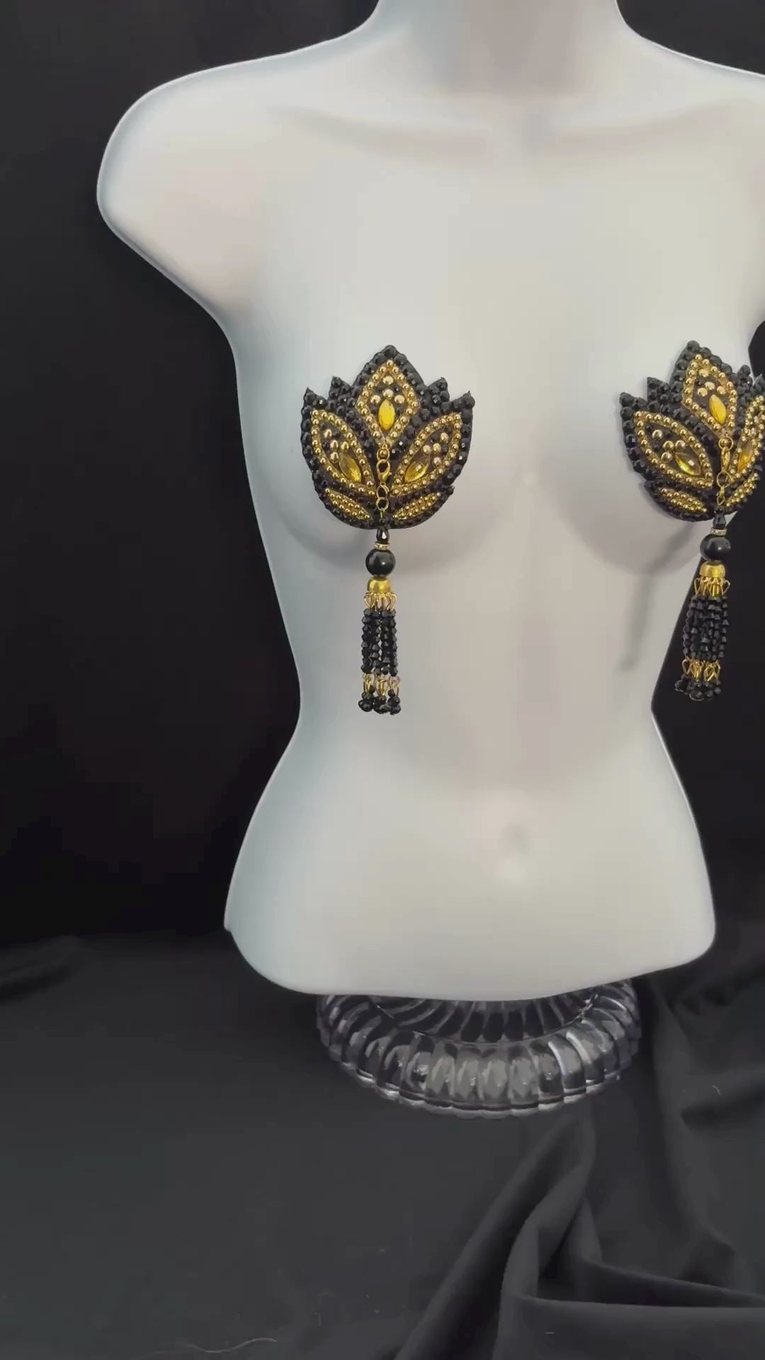 HARLOW BLOOM Black and Gold Nipple Pasties, Pasty (2pcs) with Removable Tassels (Copy)