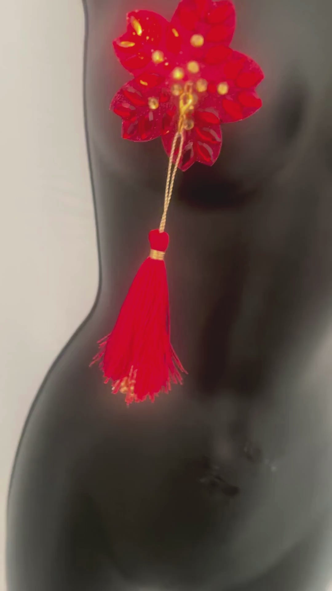 HOLLY BERRY Red/Gold or Green/Gold Floral Nipple Pasties, Covers (2pcs) w/ Hand Beaded Tassels (2pcs)