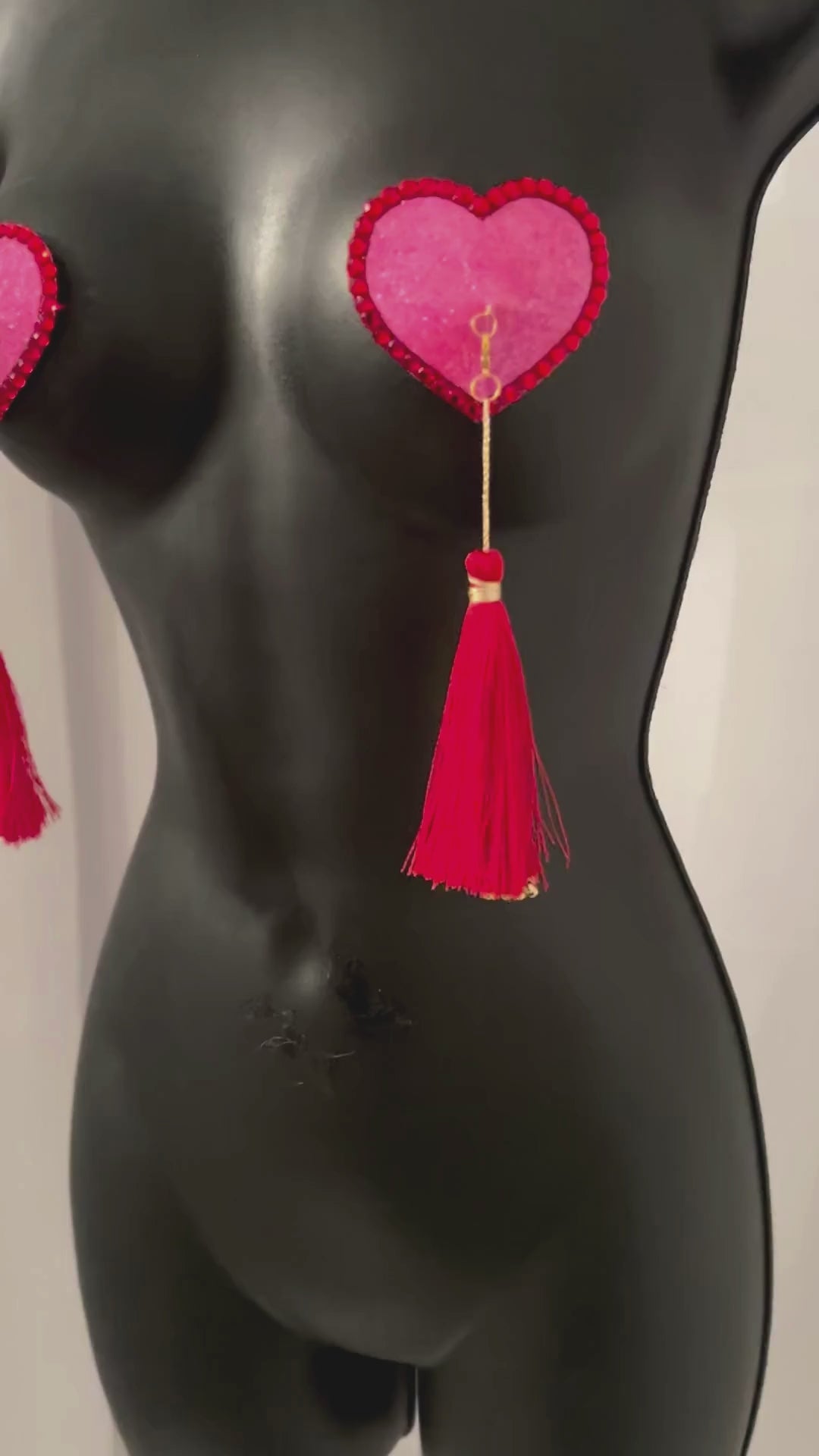 LOVE BOMB Pink & Red Glitter Heart Nipple Pasties, Pasty (2pcs) with Tassels