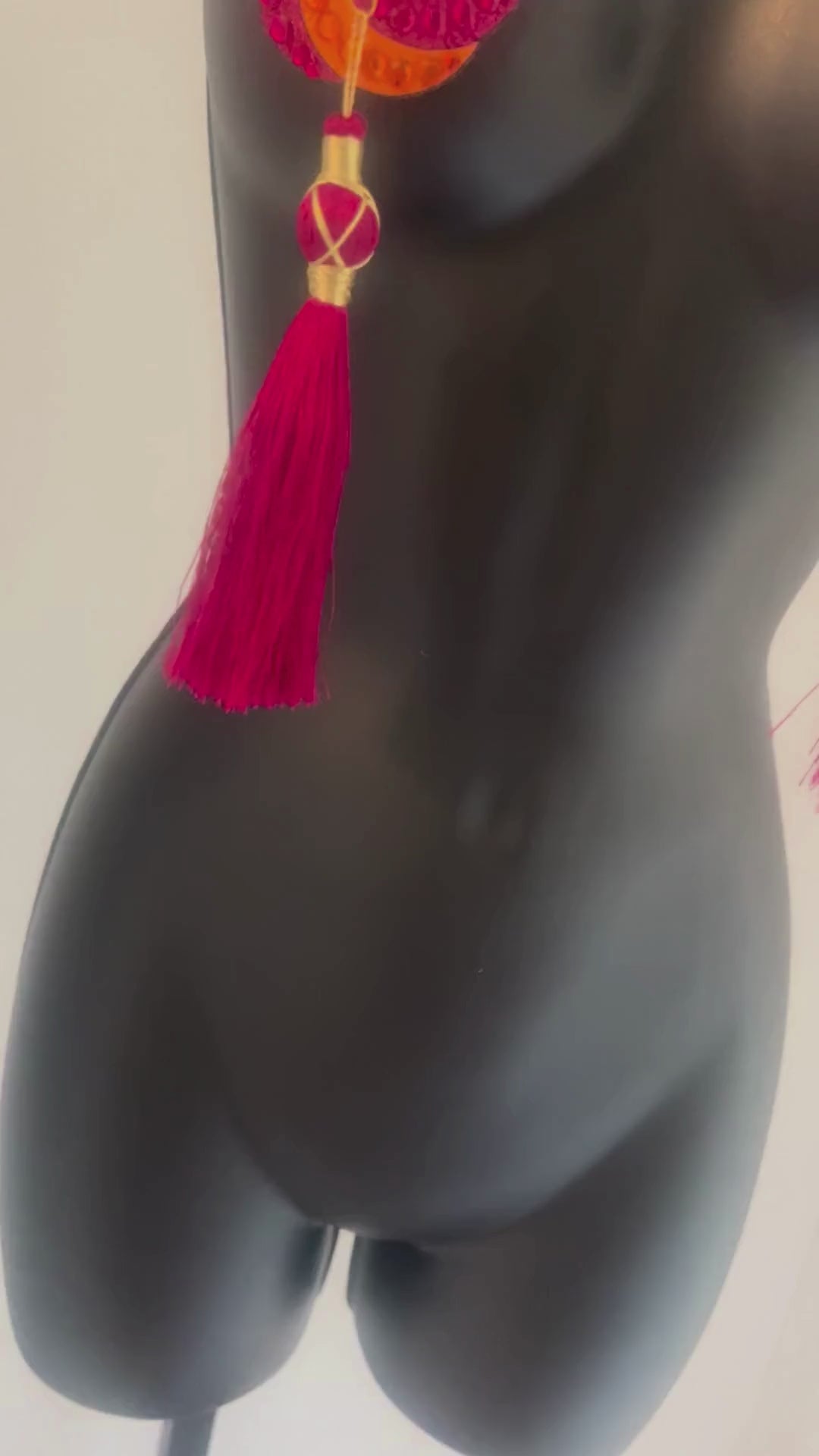 Sassy and sweet these delectable pasties add a whole lot of flirty and fun accent fto any fashionable moment. These RASPBERRY SORBET pasties are a swilr of raspberry and clementine perfection. The removable tassel adds a hint of glamor and versatility for any future outfit or attitude ✨✨✨