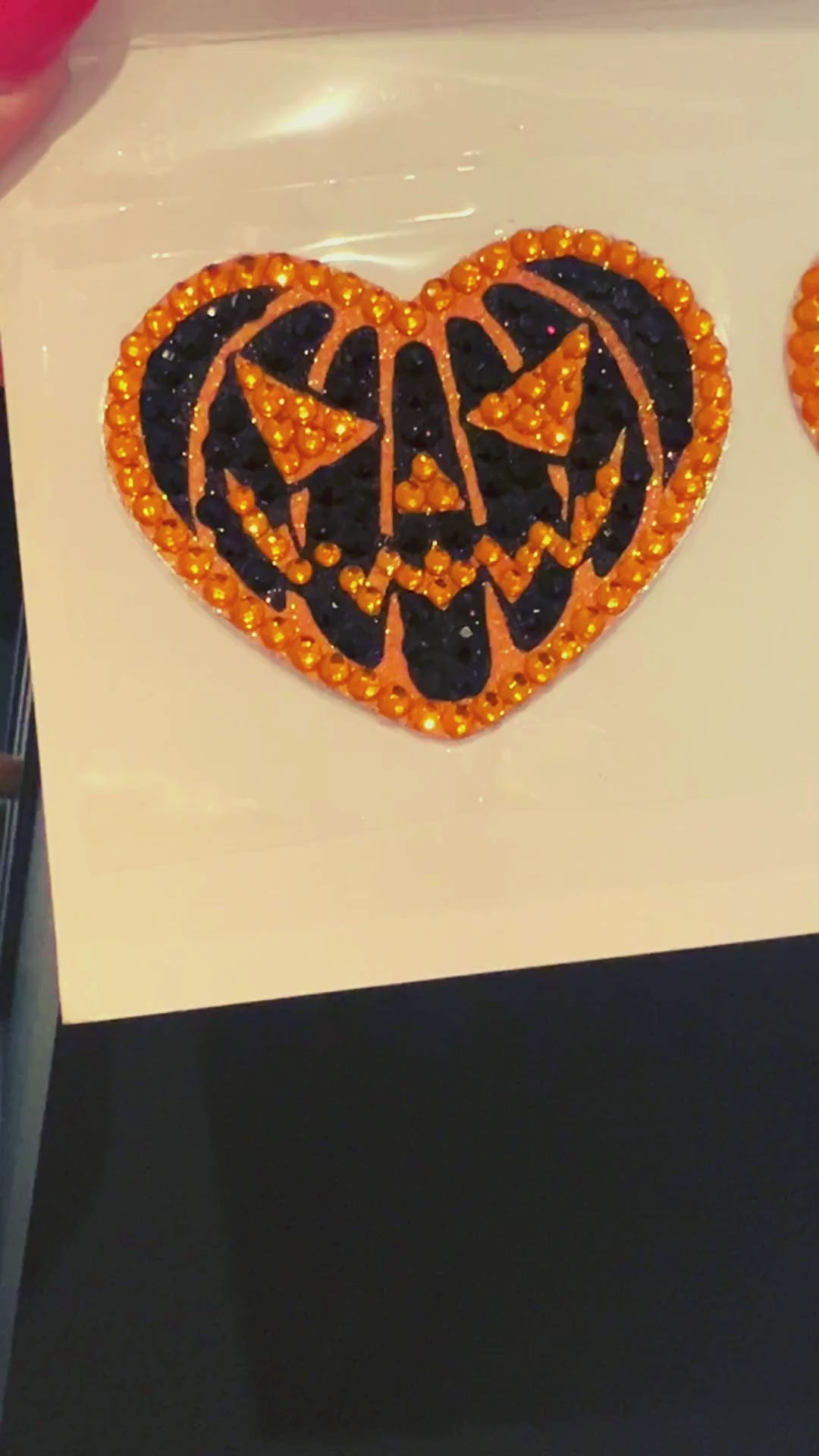 SASSY SPICE Pumpkin Heart Nipple Pasties, Covers (2pcs) in Orange and Black Glitter and Gems